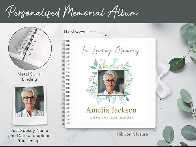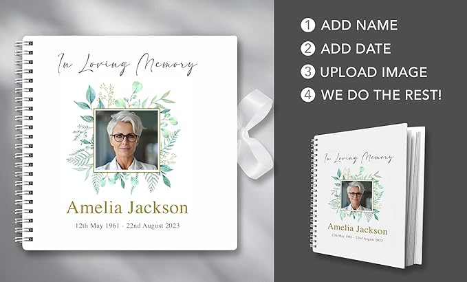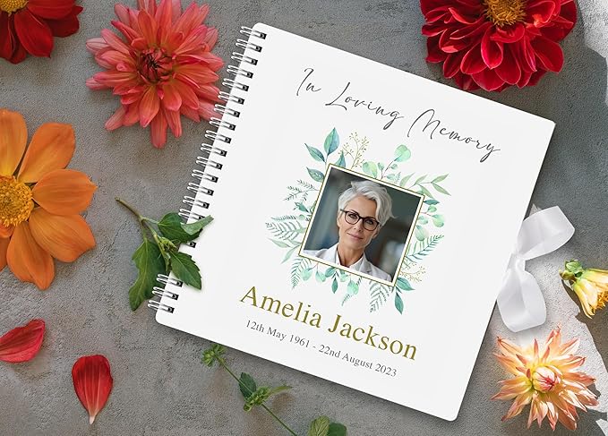 • Funeral Condolence Memory Book Made In UK: Funeral Memory Book and Table Sign Set: Create a meaningful and lasting tribute to your loved one with this elegantly designed set, perfect for memorializing their life and celebrating their legacy.