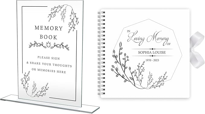 Made In UK: Funeral Memory Book and Table Sign Set: Create a meaningful and lasting tribute to your loved one with this elegantly designed set, perfect for memorializing their life and celebrating their legacy. Condolence Book: Provide a space for friends and family to share their condolences, stories, and memories. This book will serve as a cherished keepsake for years to come.
