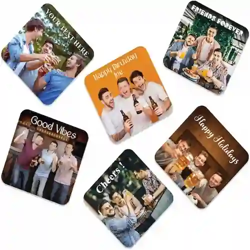 Create your own Personalised Photo Beer Coasters Set of 6 UK, designed to turn your favourite memories into stylish and practical drink mats. Simply upload your photos and customise each coaster to make a unique set perfect for your home, bar, or as a thoughtful gift.