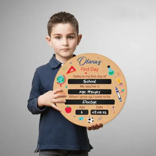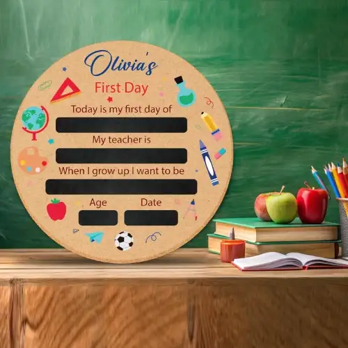 Thoughtfully designed for photo moments, this Personalised First Day of School Sign allows you to celebrate and document your child’s journey from their very first school day. Its bright and engaging design makes every picture stand out, creating keepsakes you’ll cherish forever.