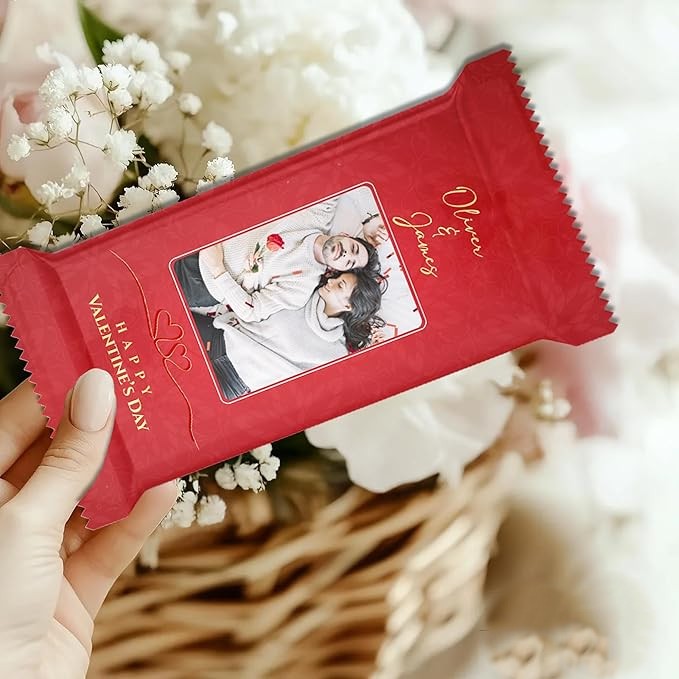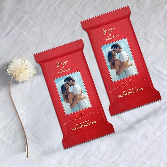 Surprise your loved one with a personalised chocolate gift, featuring a delicious milk chocolate bar wrapped in a unique custom photo design, making it a thoughtful and romantic treat. Whether it’s for your boyfriend, girlfriend, husband, or wife, this sentimental Valentine’s gift is a perfect way to celebrate love in a special and heartfelt manner. Crafted from high-quality milk chocolate, it offers a rich and creamy taste, making it an indulgent delight for Valentine’s Day or any romantic occasion. The custom photo design wrap allows you to personalise it with a cherished memory, adding a unique and meaningful touch that makes this gift truly one-of-a-kind. Ideal for anniversaries, birthdays, or simply as a sweet surprise, this beautifully wrapped chocolate bar is a wonderful way to express your love and appreciation while treating your special someone to a delicious and memorable experience.