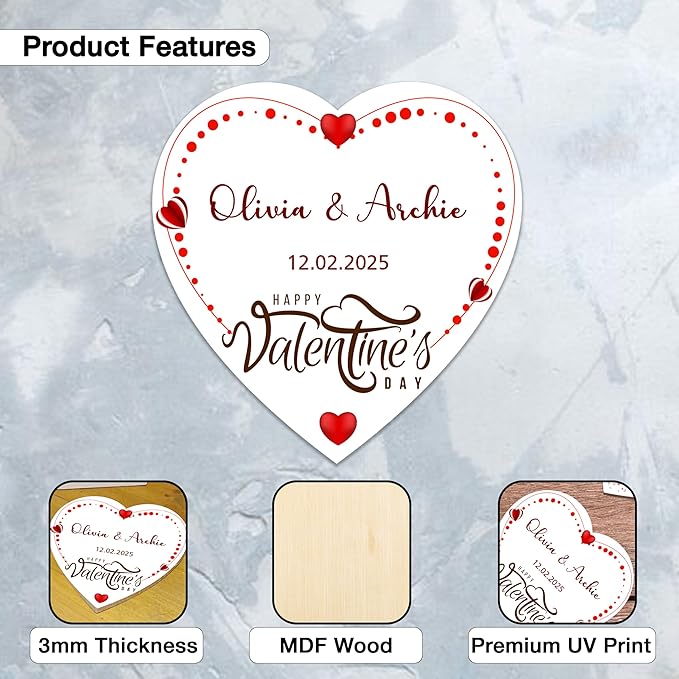• Personalised Valentines Decorations Gifts s: Set of 2 custom wooden heart-shaped coasters, adding a romantic and thoughtful touch to your Personalised Valentines Decorations Gifts home or gift collection.