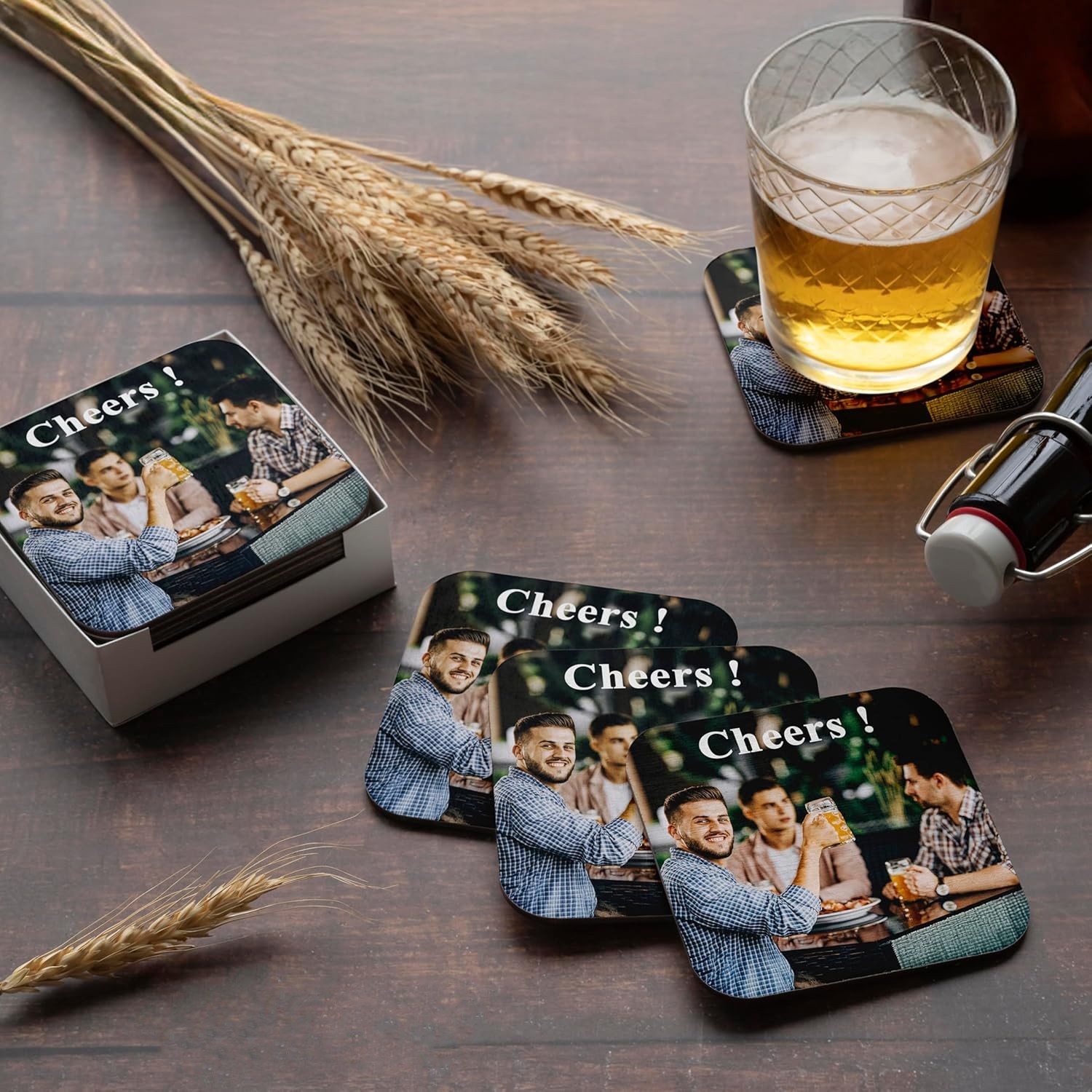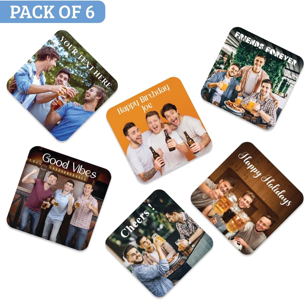 • Personalised Photo Beer Coasters : Our Personalized Photo Coasters Drink Mats are available in sets of 12, 24, 48, and 96—perfect for gifting on any occasion!
