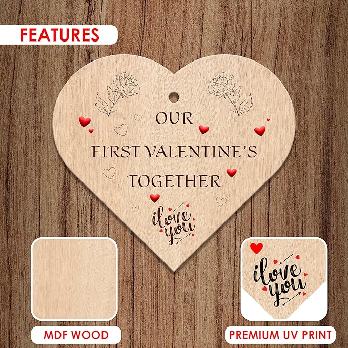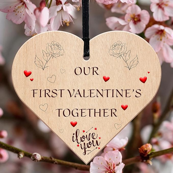 • Decorations Heart Gifts For Him : A beautifully crafted wooden sign, perfect for commemorating your first Valentine’s Day together in a heartfelt way.